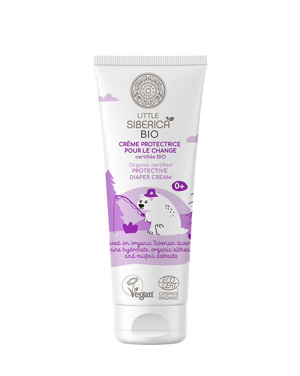 Αυτή η κρέμα πάνας, με βάση το βιολογικό υδρολικό πεύκο νάνου Σιβηρίας, τα βιολογικά εκχυλίσματα althea και milfoil, προστατεύει το ευαίσθητο δέρμα του μωρού από εξωτερικούς παράγοντες και έχει ενυδατική και καταπραϋντική δράση.