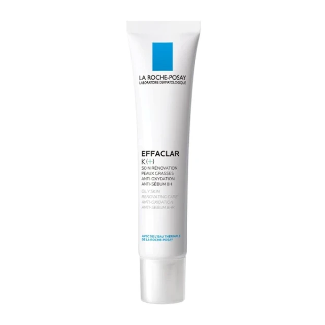 Το EFFACLAR K (+) είναι η 1η* φροντίδα ανανέωσης για το λιπαρό δέρμα, η οποία προλαμβάνει την οξείδωση που προκαλείται σε επανεμφανιζόμενα σπυράκια, με αντιοξειδωτικές ιδιότητες και δράση κατά του σμήγματος για 8 ώρες. Το δέρμα γίνεται πιο λείο από την πρώτη κιόλας εφαρμογή.Ιδανικό για επανεμφανιζόμενα σπυράκια και δέρμα με ανομοιόμορφη υφή. *Από τη La Roche-Posay.
