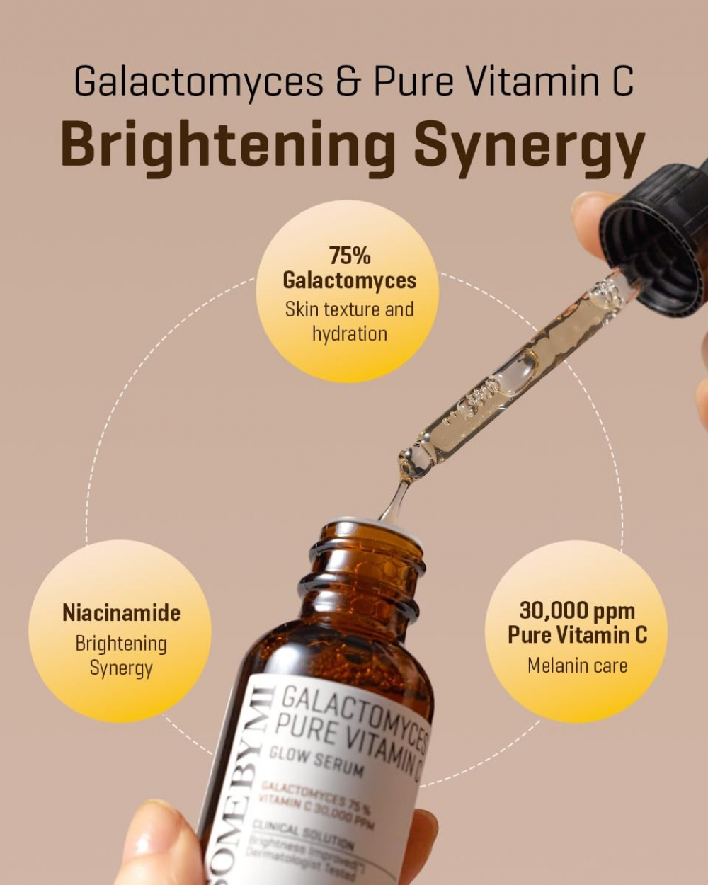 Some By Mi Galactomyces Pure Vitamin C Glow Serum - ένας διπλός ορός λάμψης και αντιγήρανσης που περιέχει 75% εκχύλισμα Galactomyces και 30.000 ppm καθαρής βιταμίνης C. Έξι κλινικές δοκιμές έχουν αποδείξει την αποτελεσματικότητά του στη βελτίωση του τόνου του δέρματος, της λάμψης, της μελάγχρωσης, της ελαστικότητας, του ερεθισμού και της ενυδάτωσης. Είναι υποαλλεργικό και απαλλαγμένο από 20 επιβλαβή συστατικά, καθιστώντας το κατάλληλο για όσους έχουν ευαίσθητο δέρμα.