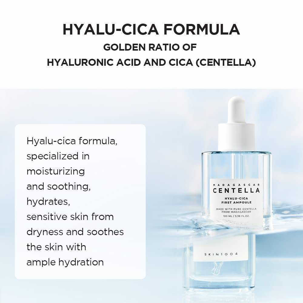 Έλαιο ή βάλσαμο καθαρισμού -> Αφρός καθαρισμού -> Toner -> Essence -> Skin1004 Madagascar Centella Hyalu-cica Blue serum -> Ενυδάτωση-> Αντιηλιακό (μόνο κατά την πρωινή ρουτίνα)