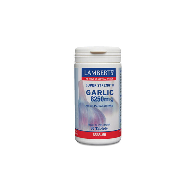 Κάθε ταμπλέτα παρέχει επίπεδα σκόρδου ισοδύναμα με 8250mg φρέσκου σκόρδου, με περιεκτικότητα αλισίνη στα 5500μg. Το σκόρδο που χρησιμοποιήθηκε στην παρασκευή των ταμπλετών είναι σημαντικά πιο κοντά στο διατροφικό προφίλ του φυσικού, ωμού σκόρδου σε σύγκριση με ορισμένα προϊόντα σκόρδου χαμηλής τιμής που κυκλοφορούν στην αγορά. Όπως όλα τα σκευάσματα της Lamberts παρασκευάζεται εντός του Ηνωμένου Βασιλείου σύμφωνα με τα αυστηρά πρότυπα της Φαρμακευτικής GMP (Pharmaceutical GMP).