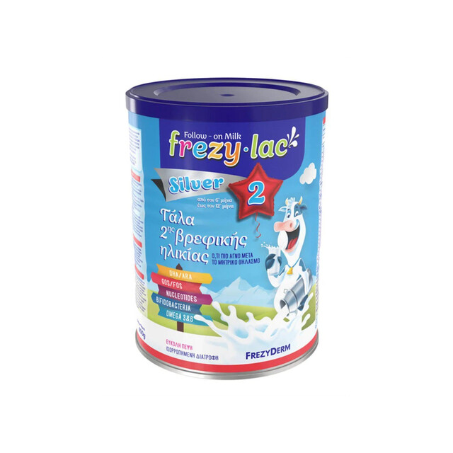 Το FREZYLAC SILVER 2 είναι αγελαδινό γάλα σε σκόνη, κατάλληλο για τη διατροφή του βρέφους από τον 6ο έως τον 12ο μήνα, στο πλαίσιο μίας μεικτής διατροφής. Είναι σχεδιασμένο σύμφωνα με τους Κανονισμούς της Ευρωπαϊκής Ένωσης που διέπουν τα παρασκευάσματα δεύτερης βρεφικής ηλικίας και καλύπτει τις διατροφικές ανάγκες του μωρού σε αυτή τη σημαντική αναπτυξιακή περίοδο.
