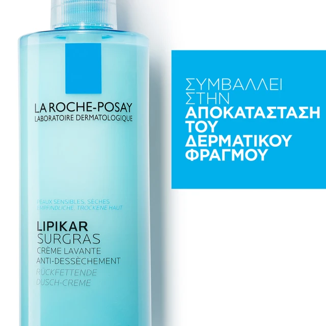 Ανακάλυψε το La Roche-Posay Lipikar Surgras 400ml, ένα απαλό καθαριστικό για πρόσωπο & σώμα, ειδικά σχεδιασμένο για ξηρό και ευαίσθητο δέρμα που έχει χάσει την άνεσή του. Προσφέρει ήπιο καθαρισμό χωρίς να διαταράσσει τη φυσική προστατευτική στοιβάδα της επιδερμίδας, ενώ παράλληλα αναπληρώνει τα απαραίτητα λιπίδια και προστατεύει από την αίσθηση τραβήγματος που προκαλεί το νερό.
