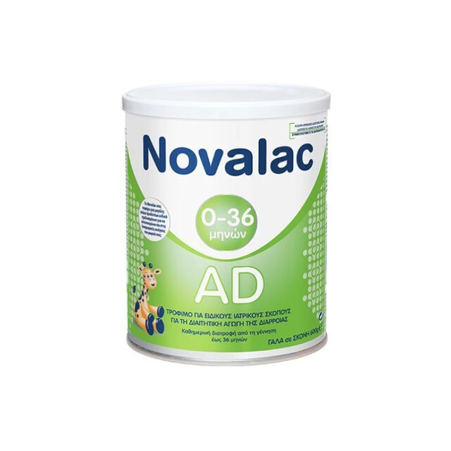 Το Novalac AD είναι ένα ειδικά σχεδιασμένο γάλα σε σκόνη που συμβάλλει στη διαιτητική διαχείριση της διάρροιας σε βρέφη από τη γέννηση μέχρι και το 3ο έτος της ζωής τους.