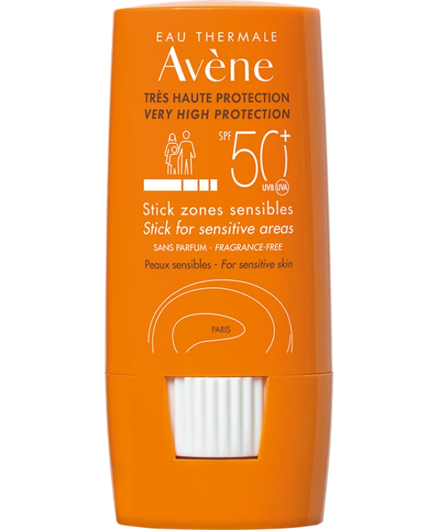 Εφαμόστε 8 περάσματα από το Στικ για ευαίσθητες ζώνες SPF 50+ σε κάθε περιοχή προς προστασία.