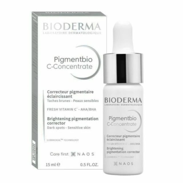Η Pigmentbio C-Concentrate συμβάλει στον περιορισμό των καφέ κηλίδων, την απολέπιση και την πρόληψη της γήρανσης. Περιέχει βιταμίνη C η οποία μένει ενεργή και φρέσκια χάρη στην ειδική συσκευασία. Τα οξέα AHA και BHA κάνουν ελαφριά απολέπιση, χαρίζοντας μοναιδκή λάμψη. Η βιταμίνη Ε προστατεύει το δέρμα από τις εξωτερικές επιθέσεις και τα σημάδια πρόωρης γήρανσης, ενώ η βιταμίνη PP ενυδατώνει έντονα το δέρμα. Οι καφέ κηλίδες περιορίζονται και η υφή του δέρματος γίνεται πιο λεία.