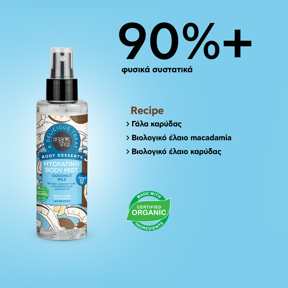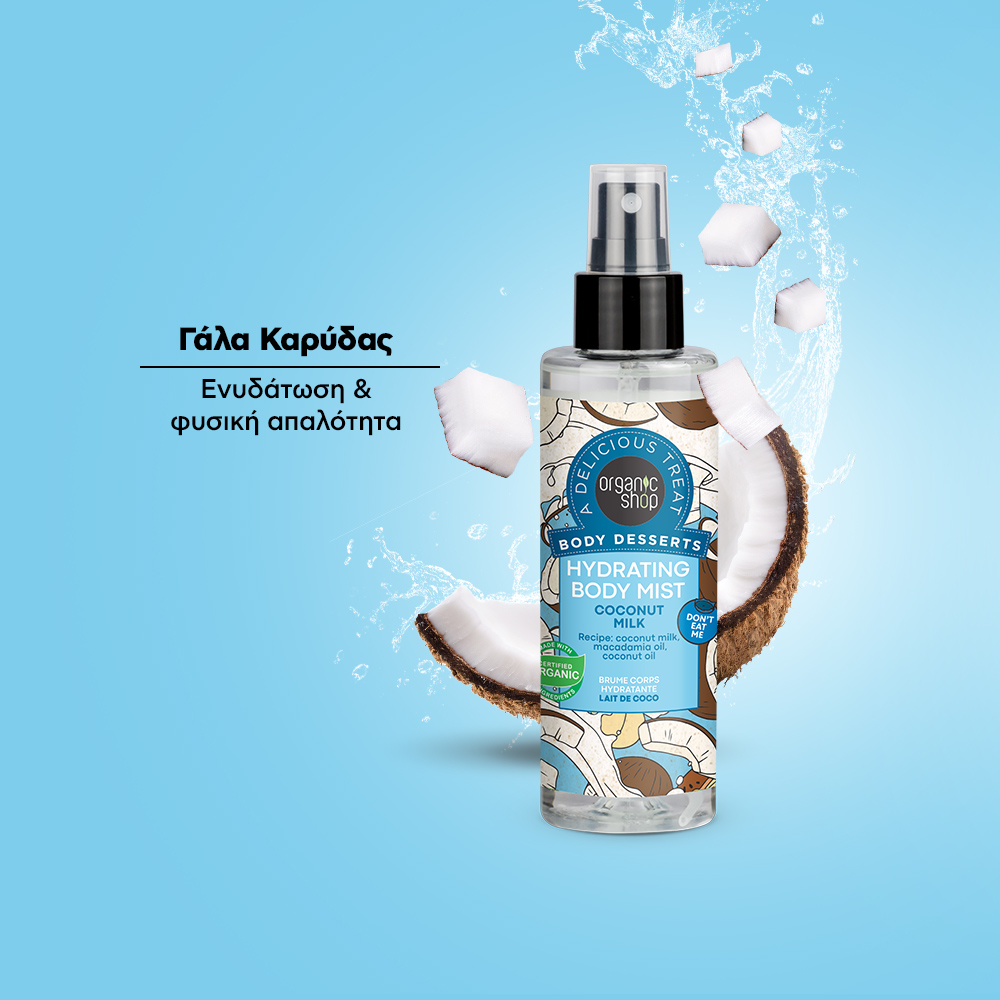 Organic Shop Body Desserts Coconut Milk Hydrating Body Mist Ενυδατικό Body Mist με Γάλα Καρύδας για Δέρμα Λαμπερό, Απαλό & Ελαστικό 200ml