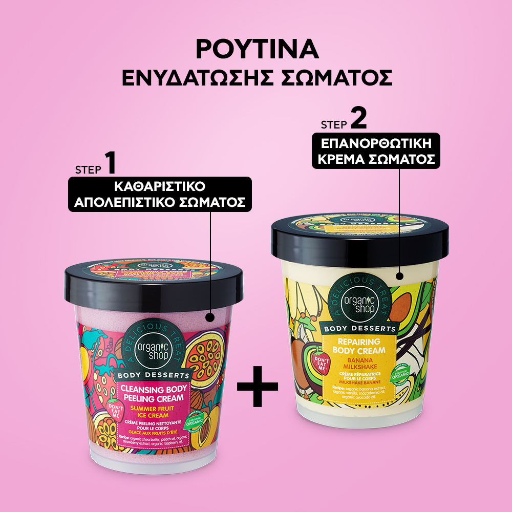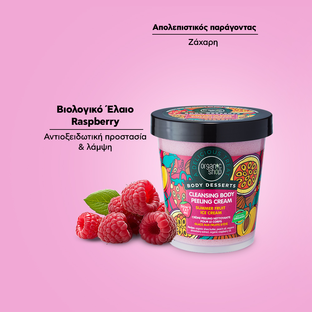 Organic Shop Body Desserts Summer Fruits Ice Cream Cleansing Body Peeling Cream Καθαριστικό Peeling Σώματος με Άρωμα Καλοκαιρινό Παγωτό Φρούτων 450ml