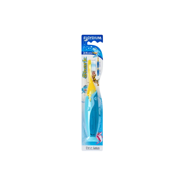 Η Οδοντόβουρτσα Elgydium Kids Shark έχει παιχνιδιάρικη λαβή σε σχήμα καρχαρία και δεν γλιστράει στα χέρια των παιδιών κάνοντας εύκολη τη χρήση της.