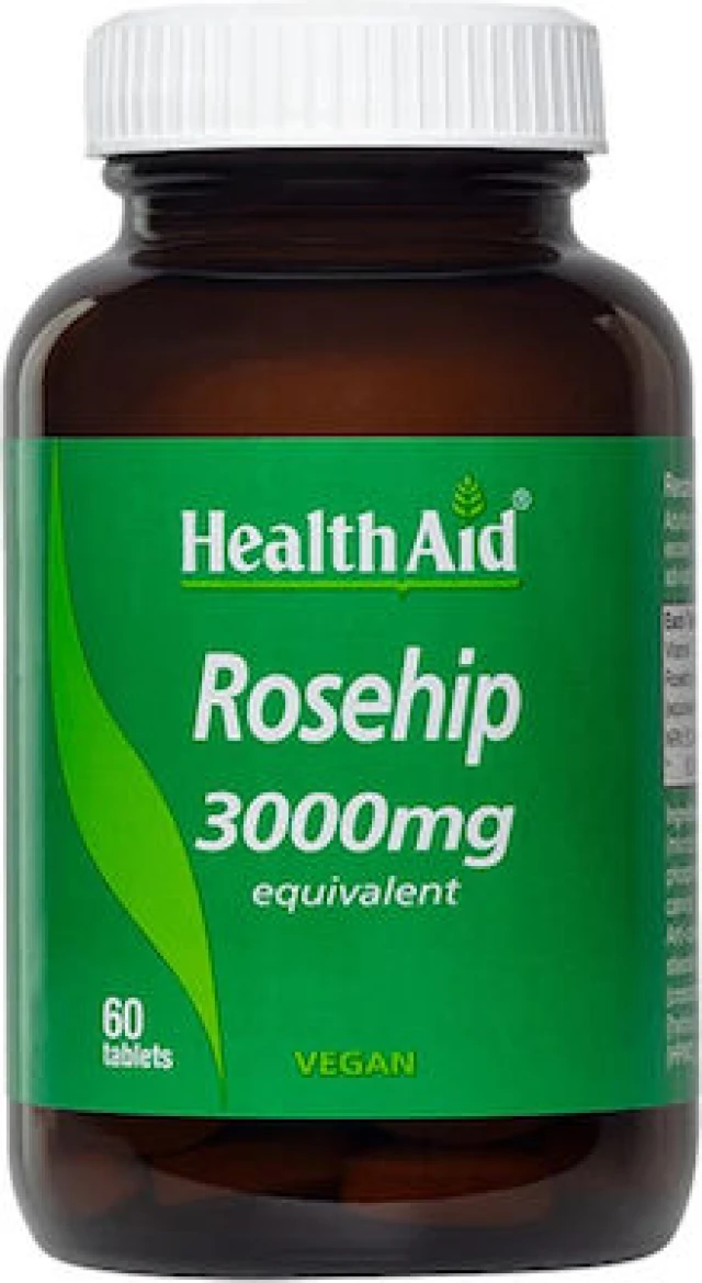 Το Rosehip της HealthAid περιέχει 150mg εκχυλίσματος καρπών αγριοτριανταφυλλιάς, ισοδύναμο με 3000mg σκόνης καρπών, εμπλουτισμένο με επιπλέον βιταμίνη C.