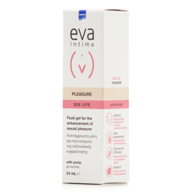 Το EVA INTIMA® PLEASURE αποτελεί ένα μοναδικά σχεδιασμένο λεπτόρρευστο gel για την ενίσχυση της γυναικείας ευχαρίστησης κατά τη διάρκεια της ερωτικής επαφής, με τρόπο απόλυτα φυσικό, χάρη στη δράση των αμινοξέων, βιταμινών και επιλεγμένων εκχυλισμάτων από βότανα. ![]()