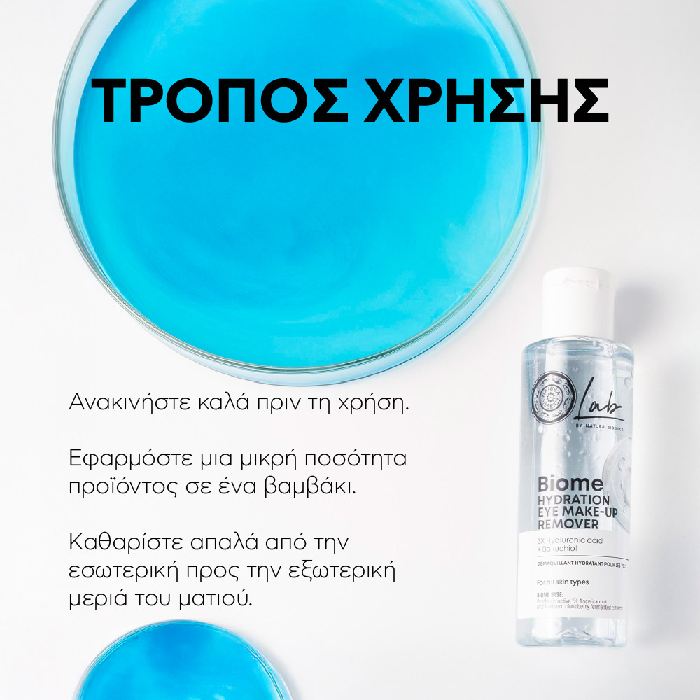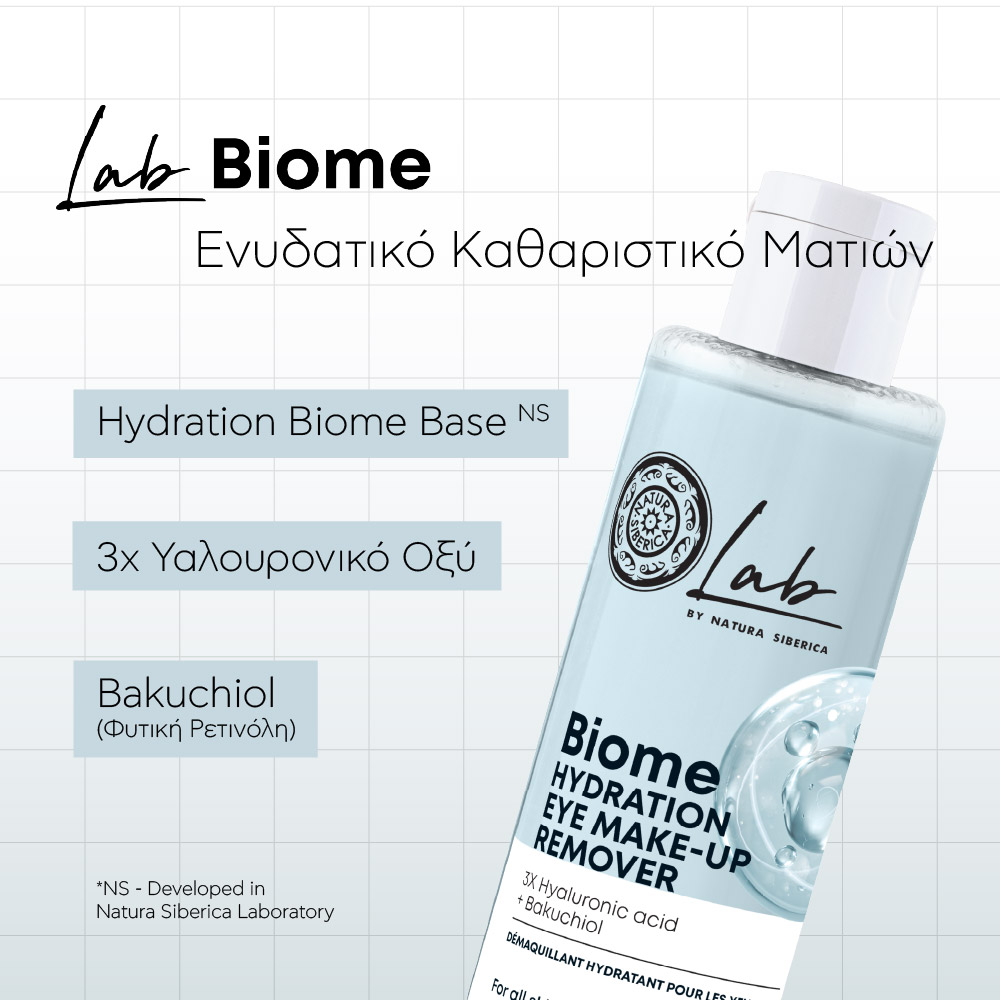 Το Ενυδατικό Καθαριστικό Ματιών Lab Biome της Natura Siberica είναι η ιδανική επιλογή Καθαρισμού - Ντεμακιγιάζ για την περιοχή των ματιών, προσφέροντας απαλή φροντίδα, ενυδάτωση και αίσθηση φρεσκάδας κάθε μέρα.