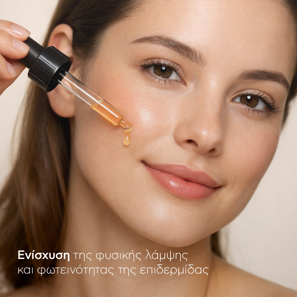 Βιταμίνη C: βελτιώνει τον τόνο και την υφή, ενισχύει τη φυσική λάμψη και συμβάλλει στην ενοποίηση του χρώματος της επιδερμίδας.