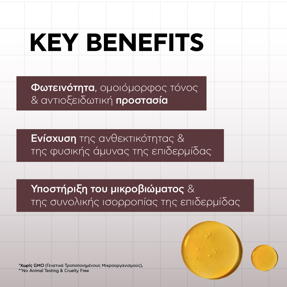 Postbiotics & Εκχυλίσματα Βοτάνων: εξισορροπούν το μικροβίωμα, προστατεύουν από εξωτερικούς παράγοντες και υποστηρίζουν τη φυσική αναγέννηση του δέρματος.