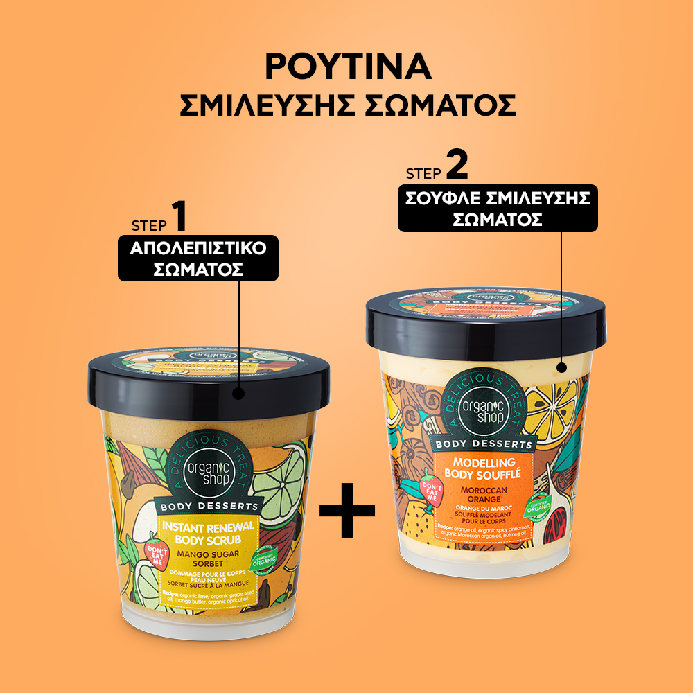 Organic Shop Body Desserts Moroccan Orange Modelling Body Souffle Σουφλέ Σμίλευσης Σώματος με Μαροκινό Πορτοκάλι 450ml