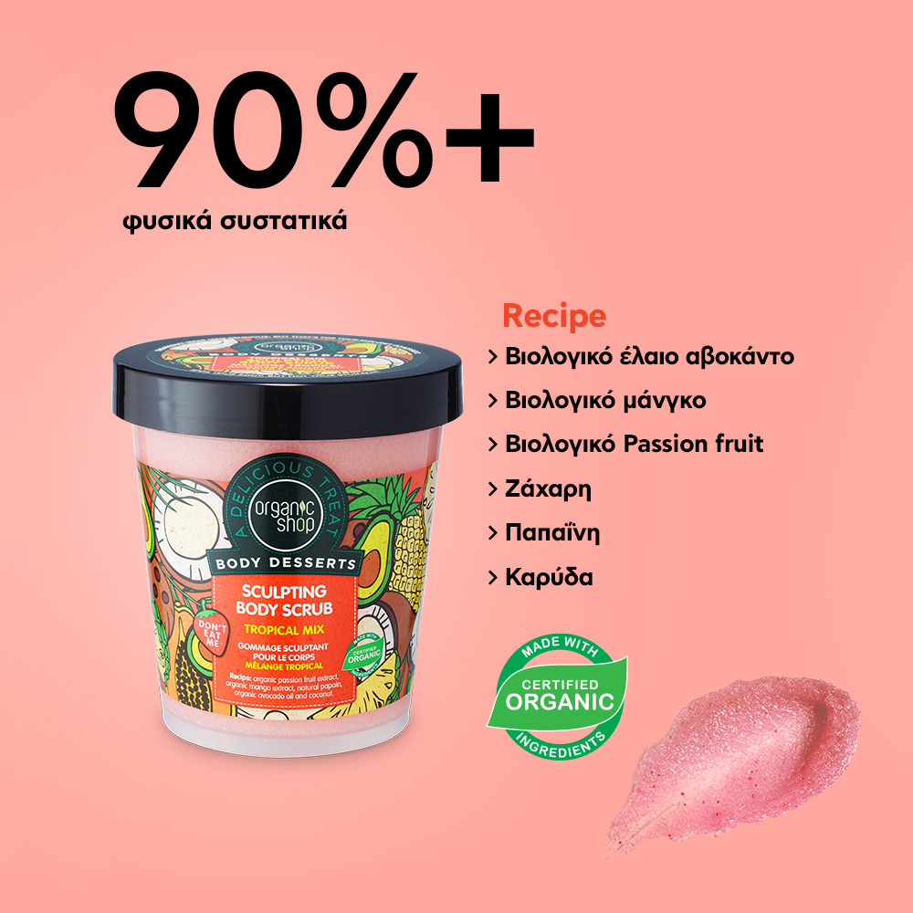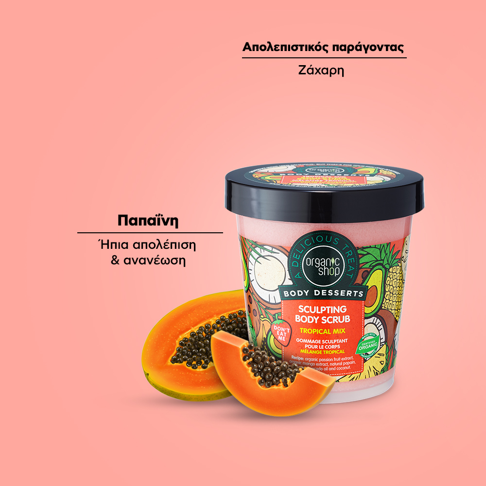 Organic Shop Body Desserts Tropical Mix Sculpting Body Scrub Απολεπιστικό Σώματος για Σμίλευση με Άρωμα Τροπικών Φρούτων 450ml