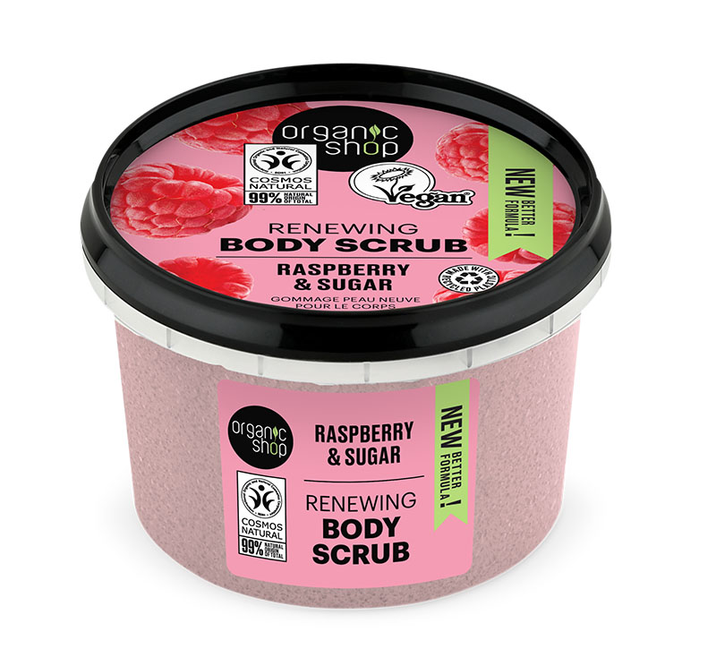 Organic Shop Renewing Body Scrub with Raspberry & Sugar Απολεπιστικό Σώματος με Σμέουρο & Ζάχαρη για Καθαρισμό - Ανανέωση της Επιδερμίδας 250ml