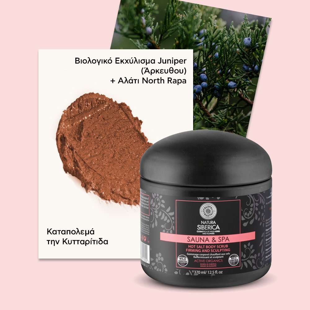 Ανακάλυψε το Scrub Σώματος Sauna & Spa για Αδυνάτισμα-Σύσφιξη-Κυτταρίτιδα, 370ml, ένα δραστικό απολεπιστικό της Natura Siberica, από τη σειρά Sauna & Spa, ειδικά σχεδιασμένο για την περιποίηση σώματος και την αποτελεσματική αντιμετώπιση της κυτταρίτιδας. Το θερμαντικό αυτό scrub αξιοποιεί τη δύναμη των άγριων βοτάνων της Σιβηρίας και των φυσικών αλάτων, ενεργοποιώντας τον μεταβολισμό και ενισχύοντας τη σφριγηλότητα της επιδερμίδας.