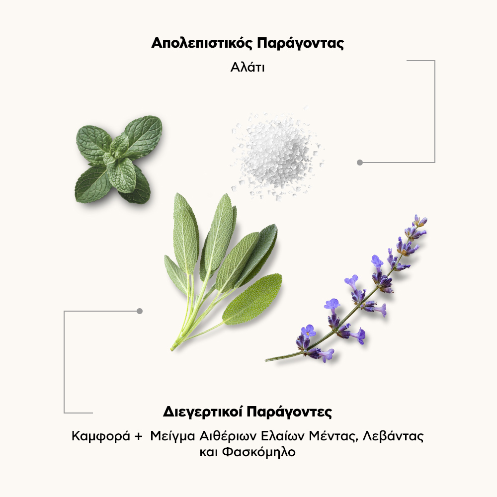 | FREE OF | Χωρίς GMO (Γενετικά Τροποποιημένους Μικροοργανισμούς), Χωρίς Paraben, Χωρίς Προπυλενογλυκόλη, Χωρίς Εξάνιο, Sustainable, Χωρίς SLS, Χωρίς PEG, Χωρίς Σιλικόνη, No Animal Testing & Cruelty Free, Χωρίς Mineral Oil, Χωρίς ΒPA, Χωρίς Χρωστικές |