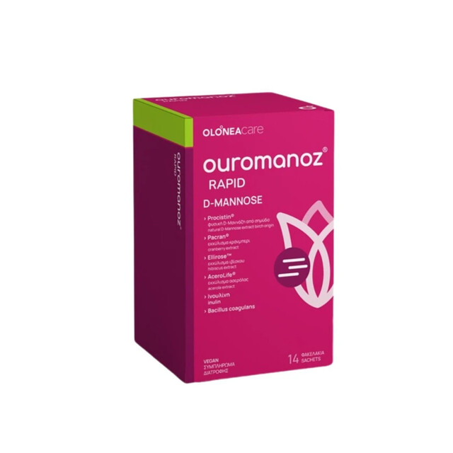 Το OLONEA Ouromanoz Rapid είναι ένα καινοτόμο συμπλήρωμα διατροφής με φυσική D-μαννόζη από φλοιό σημύδας, cranberry PACRAN®, εκχύλισμα ιβίσκου Hibiscus sabdariffa (Roselle Ellirose), προβιοτικά Bacillus coagulans, πρεβιοτικά και βιταμίνη C από ασερόλα, σχεδιασμένο για την άμεση υποστήριξη του ουροποιητικού συστήματος.