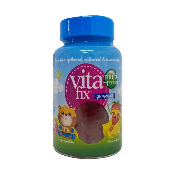Ζελεδάκια με γεύση φράουλα και σχήμα αρκουδάκι, που περιέχουν 9 βιταμίνες, ιχνοστοιχεία, πρεβιοτικά και προβιοτικά για τη συμπλήρωση των διατροφικών αναγκών των παιδιών από 4 ετών και άνω. H μορφή και υπέροχη γεύση τους τα καθιστά λαχταριστά για τα μικρά παιδιά.