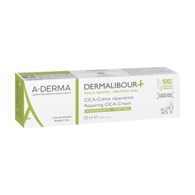 Η Dermalibour+ Cica Εξυγιαντική Επανορθωτική Κρέμα με 100% φυσική σύνθεση της A-Derma, καταπραΰνει και ευνοεί την επιδερμική επανόρθωση του ερεθισμένου και εύθραυστου δέρματος σε μόλις 24 ώρες. Ιδανική για τη φροντίδα κάθε μικροτραυματισμού και μικροερεθισμού όλης της οικογένειας.