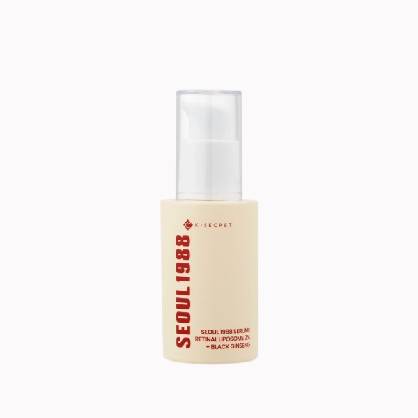 Ο K-SECRET SEOUL 1988 Retinal Liposome Ορός είναι ένας εξαιρετικά αποτελεσματικός ορός σύσφιξης που βασίζεται στη δύναμη της ρετιναλδεΰδης (Retinal) σε συγκέντρωση 2%, ενισχυμένη με τεχνολογία λιποσωμάτων για μεγαλύτερη σταθερότητα και διείσδυση. Η φόρμουλα περιλαμβάνει μαύρο τζίνσενγκ (Panax Ginseng Root Extract), ένα ισχυρό φυτικό εκχύλισμα με αντιοξειδωτικές και αναζωογονητικές ιδιότητες που τονώνει την επιδερμίδα και ενισχύει τη σφριγηλότητά της. Το προϊόν βοηθά στη μείωση λεπτών γραμμών και ρυτίδων, βελτιώνει τον τόνο και την υφή του δέρματος, ενώ παράλληλα προσφέρει ενυδάτωση και λάμψη χάρη σε ενισχυτικά συστατικά όπως η νιασιναμίδη, το έλαιο μακαντάμια και η βιταμίνη Ε.