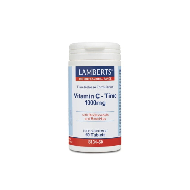 To σκεύασμα Vitamin C Time Release 1000mg της Lamberts παρέχει εγγυημένα 1000mg Βιταμίνης C σε δισκία ελεγχόμενης αποδέσμευσης και μία σημαντική ποσότητα βιοφλαβονοειδών (ρουτίνη, κερσετίνη, κιτρίνη και εσπεριδίνη)τα οποία συμβάλλουν στην απορρόφησή της από τον οργανισμό και σκόνη καρπών αγριοτριανταφυλλιάς (Rose Hips). Όπως όλα τα σκευάσματα της Lamberts, παρασκευάζεται εντός του Ηνωμένου Βασιλείου σύμφωνα με τα αυστηρά πρότυπα της Φαρμακευτικής GMP (Pharmaceutical GMP).