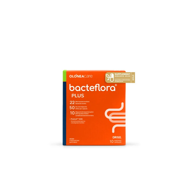 Το OLONEA Bacteflora Plus είναι ένα συμπλήρωμα διατροφής με 22 στελέχη προβιοτικών (50 δισ. CFU ανά κάψουλα), πρεβιοτικά ξυλοολιγοσακχαρίτες PreticX και 10 μεταβιοτικά στελέχη, σχεδιασμένο για την καθημερινή ενίσχυση και εξισορρόπηση του εντερικού μικροβιώματος. Η σύγχρονη καθημερινότητα, το στρες, η κακή διατροφή, το κάπνισμα, το αλκοόλ, τα αντιβιοτικά και περιβαλλοντικοί παράγοντες μπορούν να διαταράξουν τη μικροχλωρίδα του εντέρου, οδηγώντας σε φούσκωμα, αέρια, κοιλιακό πόνο, διάρροια και γενικότερες γαστρεντερικές διαταραχές, αλλά και σε προβλήματα όπως στοματίτιδα ή δερματικές ενοχλήσεις.