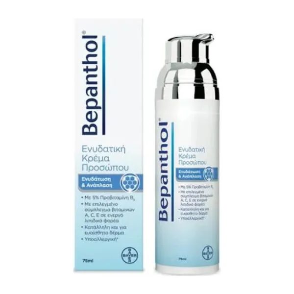 Η Ενυδατική Κρέμα Προσώπου Bepanthol είναι κατάλληλη για την καθημερινή περιποίηση του δέρματος του προσώπου. Η σύνθεσή της περιέχει 5% Προβιταμίνη Β5, η οποία ενυδατώνει και υποστηρίζει τη φυσική διαδικασία ανάπλασης του δέρματος. Περιέχει επίσης ένα επιλεγμένο σύμπλεγμα βιταμινών Α, C, Ε προστατευμένο σε έναν ενεργό λιπιδικό φορέα, τα λιποσώματα ενισχύοντας την ενυδάτωση και την ανάπλαση του δέρματος.![]()
