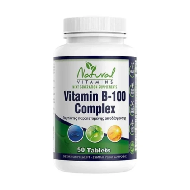 Natural Vitamins Vitamin B-100 Complex Συμπλήρωμα Διατροφής Συμπλέγματος Βιταμινών Β για την Καλή Υγεία του Νευρικού Συστήματος, Ενίσχυση της Μνήμης, Κατά της Κούρασης & Κόπωσης 50tabs