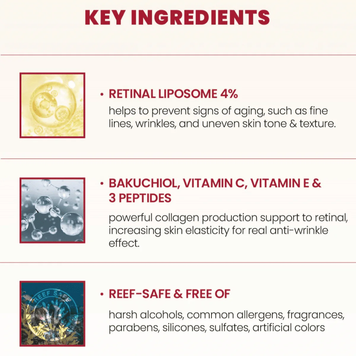 Aqua, Glycerin, Dipropylene Glycol, Caprylic/Capric Triglyceride, 1,2-Hexanediol, Butylene Glycol Dicaprylate/dicaprate, Niacinamide, Pentaerythrityl Tetraethylhexanoate, Cetearyl Alcohol, Butylene Glycol, Cetearyl Olivate, Sorbitan Olivate, Hydrogenated Lecithin, Macadamia Ternifolia Seed Oil, Carbomer, Tromethamine, Propanediol, Glyceryl Stearate, Cholesterol, Polyglyceryl-10 Oleate, Ethylhexylglycerin, Adenosine, Brassica Campestris (Rapeseed) Sterols, Phytosteryl/behenyl/octyldodecyl Lauroyl Glutamate, Retinal, Silica, Disodium EDTA, Aluminum/Magnesium Hydroxide Stearate, Lactobacillus/Panax Ginseng Root Ferment Filtrate, Lactobacillus/Rice Ferment, Lactobacillus/soybean Ferment Extract, Saccharomyces/Coix Lacryma-Jobi Ma-Yuen Seed Ferment Filtrate, Saccharomyces/Potato Extract Ferment Filtrate, Tocopherol, Potassium Cetyl Phosphate, Pentaerythrityl Tetra-di-t-Butyl Hydroxyhydrocinnamate, Sodium Hyaluronate, Arctium Lappa Root Extract, Cnidium Officinale Root Extract, Dioscorea Japonica Root Extract, Paeonia Suffruticosa Root Extract, Rehmannia Chinensis Root Extract, 3-o-Ethyl Ascorbic Acid, Bakuchiol, Sh-Oligopeptide-1, Sh-Oligopeptide-2, Sh-Polypeptide-1