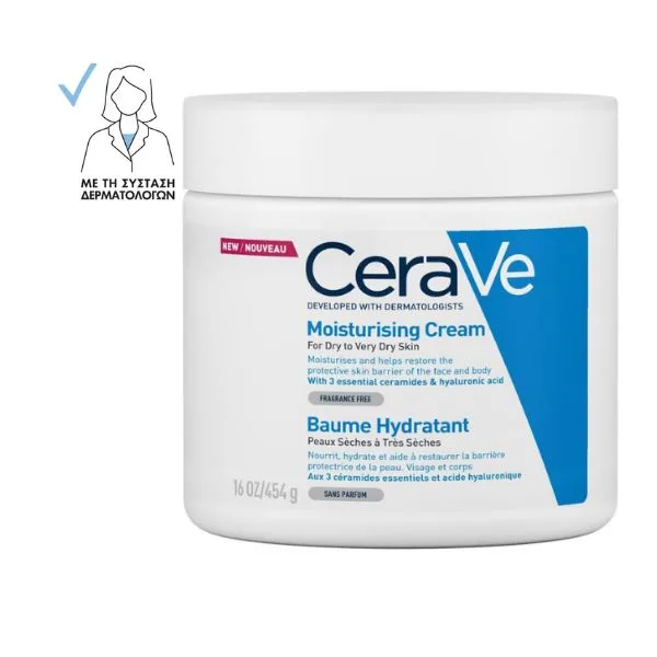 H CeraVe Moisturising Cream ενυδατώνει και βοηθά στην αποκατάσταση του επιδερμιδικού φραγμού στο πρόσωπο και στο σώμα. Με 3 απαραίτητα ceramides και υαλουρονικό οξύ. Για ξηρό έως πολύ ξηρό δέρμα Η CeraVe Moisturising Cream, που έχει αναπτυχθεί σε συνεργασία με δερματολόγους, ενυδατώνει αποτελεσματικά, ενώ παράλληλα συμβάλλει στην αποκατάσταση του επιδερμιδικού φραγμού. Αυτή η πλούσια, μη λιπαρή κρέμα, με 3 απαραίτητα ceramides και υαλουρονικό οξύ, παρέχει ενυδάτωση όλη την ημέρα μετά από μία μόνο χρήση.![]()