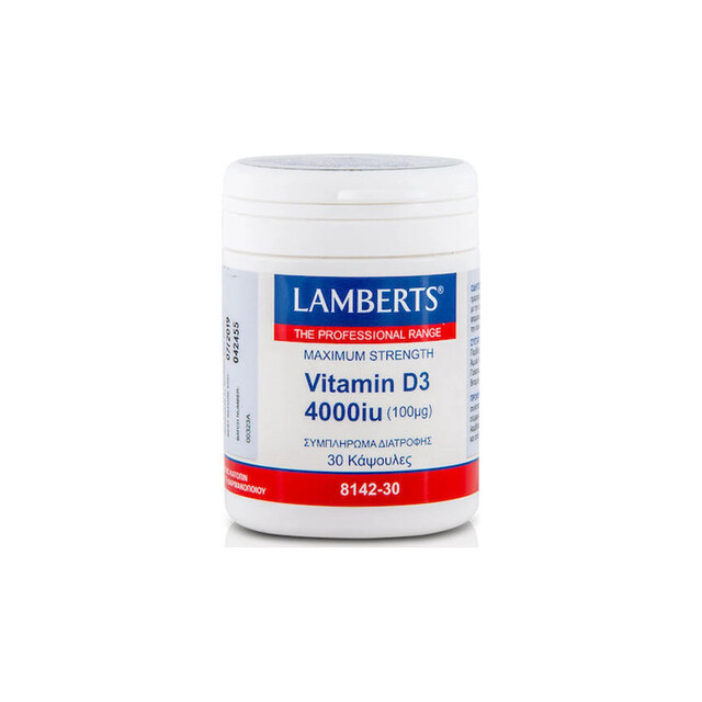 Η Βιταμίνη D 4000iu της Lamberts αποτελεί ένα κλινικά επιβεβαιωμένο συμπλήρωμα διατροφής το οποίο παρέχει Βιταμίνη D σε μορφή χοληκαλσιφερόλης (D3). Η βιταμίνη D3 είναι κατάλληλη για όσους εμφανίζουν έλλειψη της βιταμίνης, για τη φυσιολογική ανάπτυξη των οστών και την ενίσχυση του ανοσοποιητικού συστήματος. Τα οφέλη της «βιταμίνης του ήλιου» είναι αναρίθμητα και τεκμηριωμένα. Σπουδαιότερο αυτών, η απορρόφηση και αξιοποίηση του ασβεστίου και του φωσφόρου, για τη διατήρηση της υγείας των οστών και των δοντιών.