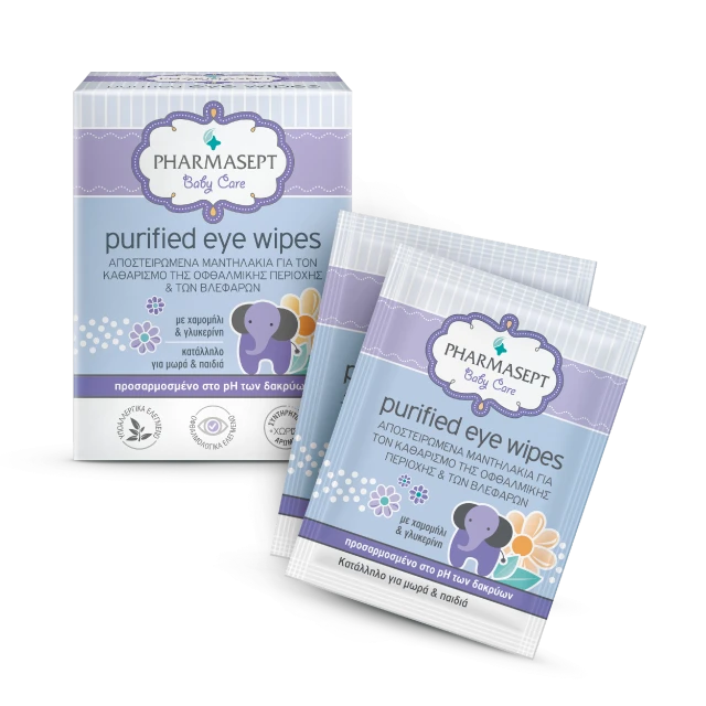 Pharmasept Baby Care Purified Eye Wipes Αποστειρωμένα Μαντηλάκια για τον Καθαρισμό της Οφθαλμικής Περιοχής & των Βλεφάρων 10 Τεμάχια
