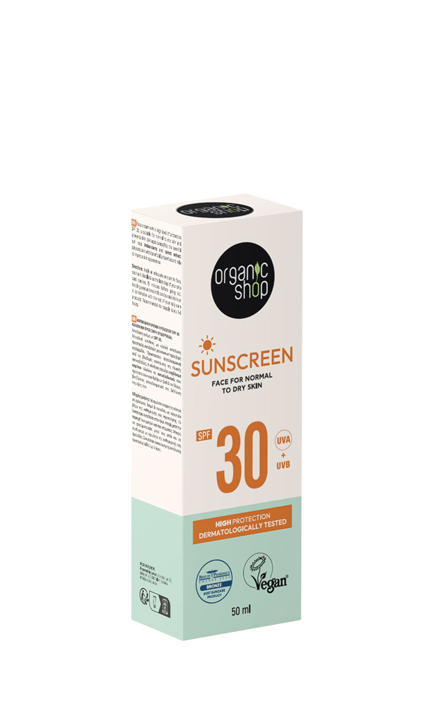 Πρόσφερε στην επιδερμίδα σου φυσική προστασία και φροντίδα με το Αντηλιακό Προσώπου SPF30 της Organic Shop και απόλαυσε υγιές, φωτεινό δέρμα κάθε μέρα, με τη δύναμη της σειράς Organic Shop Basic.