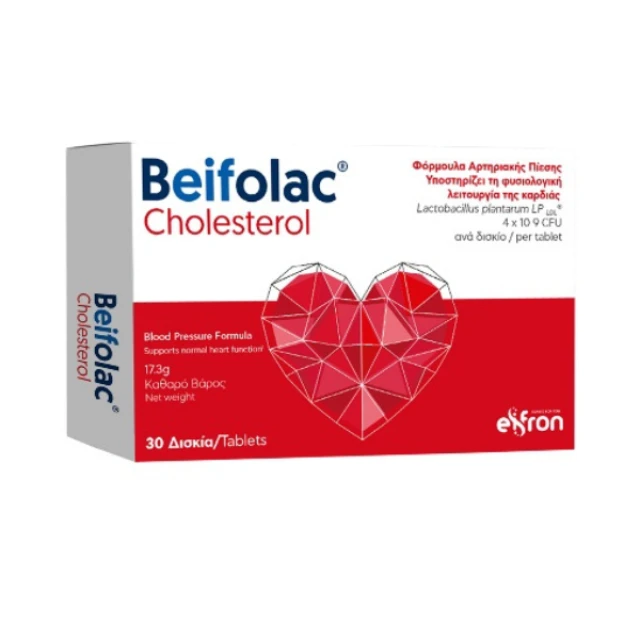 Το συμπλήρωμα διατροφής Beifolac Cholesterol αξιοποιεί τη δύναμη του μικροβιώματος μέσω του προβιοτικού στελέχους Lactobacillus plantarum LPLDL®, το οποίο έχει αποδειχθεί ότι μειώνει τη χοληστερόλη LDL("κακή") και ταυτόχρονα ενισχύει τα επίπεδα χοληστερόλης HDL("καλή"), χωρίς να παρατηρούνται παρενέργειες ενώ η τριπλή στοιβάδα του δισκίου εξασφαλίζει βελτιστοποιημένη αποδέσμευση των συστατικών, για μέγιστη απορρόφηση και συνδυασμένη δράση.![]()