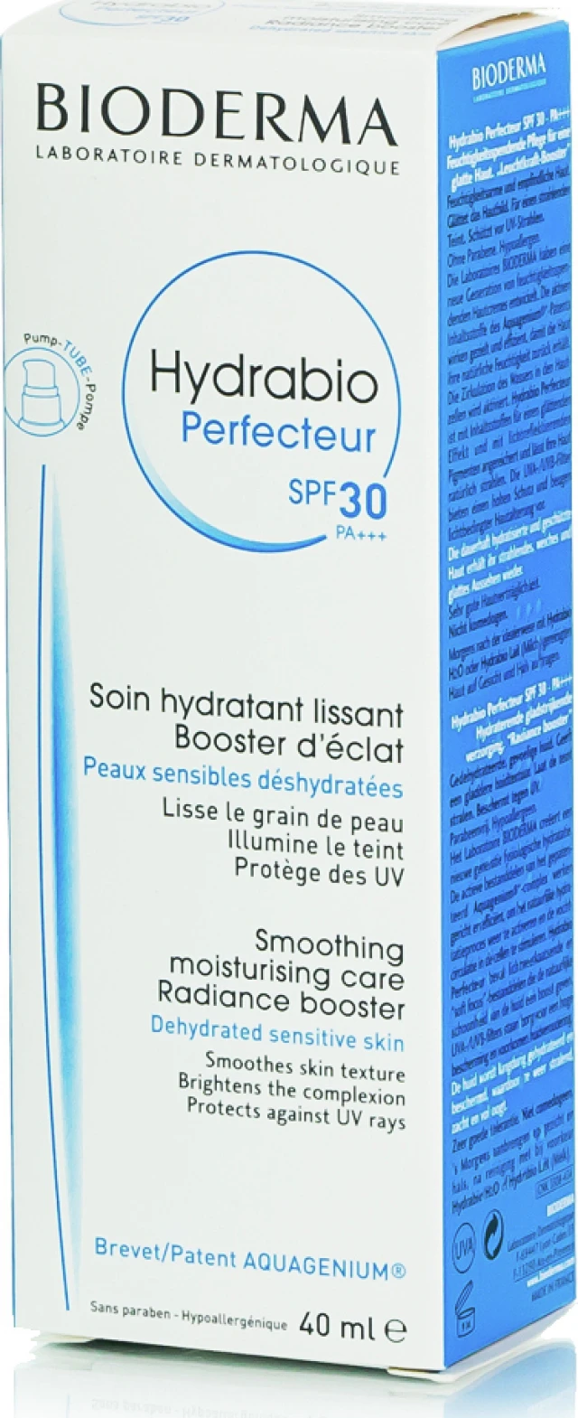 Τα εργαστήρια Bioderma καινοτομούν και δημιουργούν τη φυσιολογική διαδικασία ενυδάτωσης νέας γενιάς. Χάρη στα ενεργά συστατικά πατέντας Aquagenium ενεργοποιείται η φυσική διαδικασία ενυδάτωσης και ενισχύεται η κυκλοφορία νερού στα επιδερμικά κύτταρα. Με την καταπραϋντική της δράση, η Hydrabio Gel Creme βελτιώνει την υφή της επιδερμίδας και αναζωογονεί τη φυσική της λάμψη. Χάρη στα UVA UVB αντηλιακά φίλτρα, η Hydrabio Perfecteur παρέχει υψηλή προστασία από τις βλαβερές συνέπειες των ακτινών UV και προλαμβάνει την πρόωρη γήρανση του δέρματος.