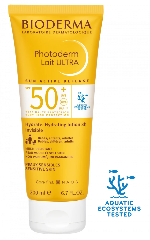 Το Photoderm Lait ULTRA SPF50+ είναι το αποτέλεσμα της τελευταίας έρευνας του Εργαστηρίου της Bioderma. Προσαρμόστηκε για να παρέχει πολύ υψηλή προστασία, ενισχυμένη από τις ακτίνες UVA, για όλα τα ευαίσθητα δέρματα, ακόμη και τα πιο ευάλωτα.