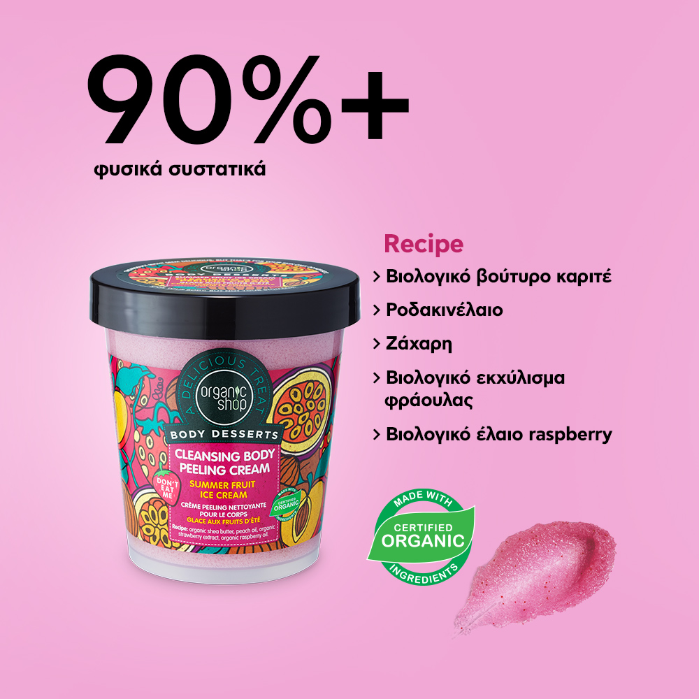Organic Shop Body Desserts Summer Fruits Ice Cream Cleansing Body Peeling Cream Καθαριστικό Peeling Σώματος με Άρωμα Καλοκαιρινό Παγωτό Φρούτων 450ml
