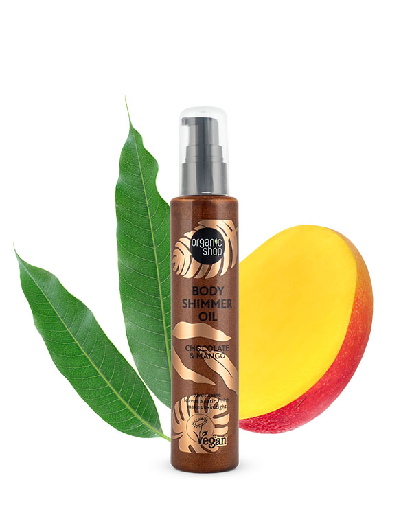 Organic Shop Body Shimmer Oil Λάδι Σώματος με Σοκολάτα & Μάνγκο για Λάμψη με Μεταξένιο Αποτέλεσμα Ενισχύοντας το Φυσικό Τόνο του Δέρματος 100ml - Chocolate & Mango
