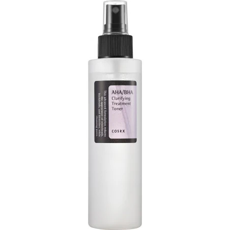 Το COSRX AHA / BHA Clarifying Treatment Toner είναι μία απολεπιστική τονωτική λοσιόν με AHA και BHA's. Τα BHA είναι λιποδιαλυτά. Λειτουργούν όχι μόνο επιφανειακά, αλλά διεισδύουν και καθαρίζουν τους βαθύτερους φραγμένους πόρους και περιποιούνται τις κηλίδες. Αυτός είναι ο λόγος για τον οποίο τα BHA προτιμώνται από άτομα με κανονικό έως λιπαρό δέρμα με φραγμένους πόρους.