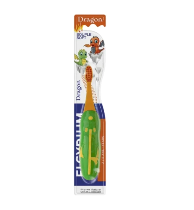 Η Elgydium Kids Dragon Οδοντόβουρτσα είναι ειδικά σχεδιασμένη για παιδιά ηλικίας 2-6 ετών. Η λαβή της είναι κατασκευασμένη από υλικό που δεν γλιστράει, διευκολύνοντας το παιδί να κρατάει την οδοντόβουρτσα με ασφάλεια. Οι απαλές τρίχες φροντίζουν τα παιδικά δοντάκια χωρίς να προκαλούν τραυματισμούς στα ούλα, ενώ ο σχεδιασμός της ενθαρρύνει τα παιδιά να μάθουν να βουρτσίζουν μόνα τους με ευκολία και διασκέδαση.