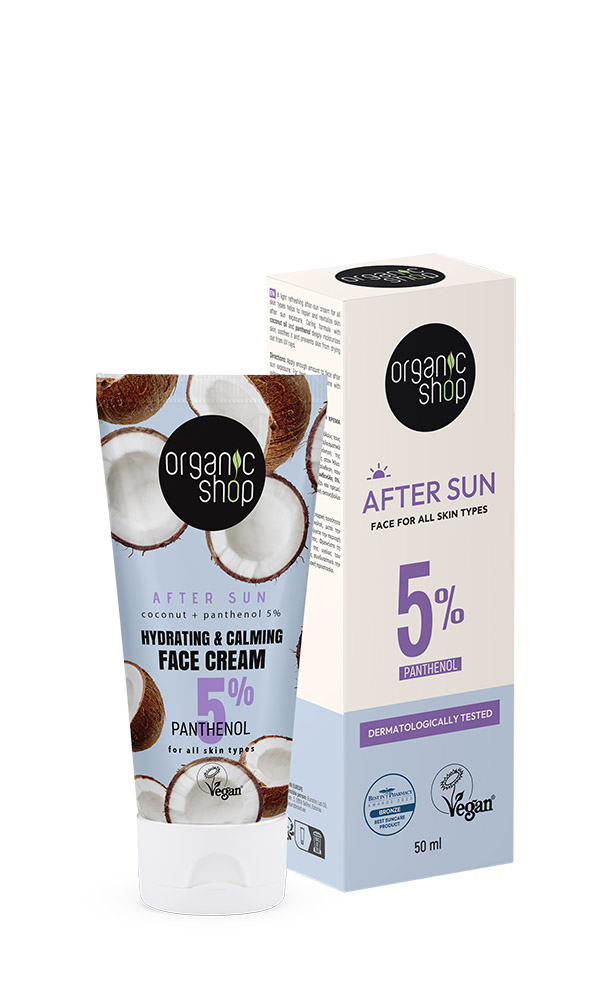 Organic Shop After Sun for All Skin Types Ενυδατική & Καταπραϋντική Κρέμα Προσώπου για Μετά τον Ήλιο για Όλους τους Τύπους Δέρματος 50ml