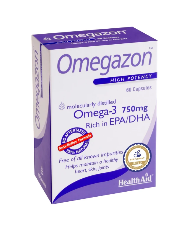 Το Omegazon της HealthAid είναι υψηλής καθαρότητας, πλούσιο σε Ω3 λιπαρά οξέα, το οποίο έχει υποστεί μοριακή απόσταξη, απαλλαγμένο από διοξίνες, προσμίξεις ή βαρέα μέταλλα, ώστε ν’ αποδίδει πλήρη συγκέντρωση ωφέλιμων λιπαρών οξέων EPA/DHA στην ελεύθερη & πιο καθαρή μορφή τους.