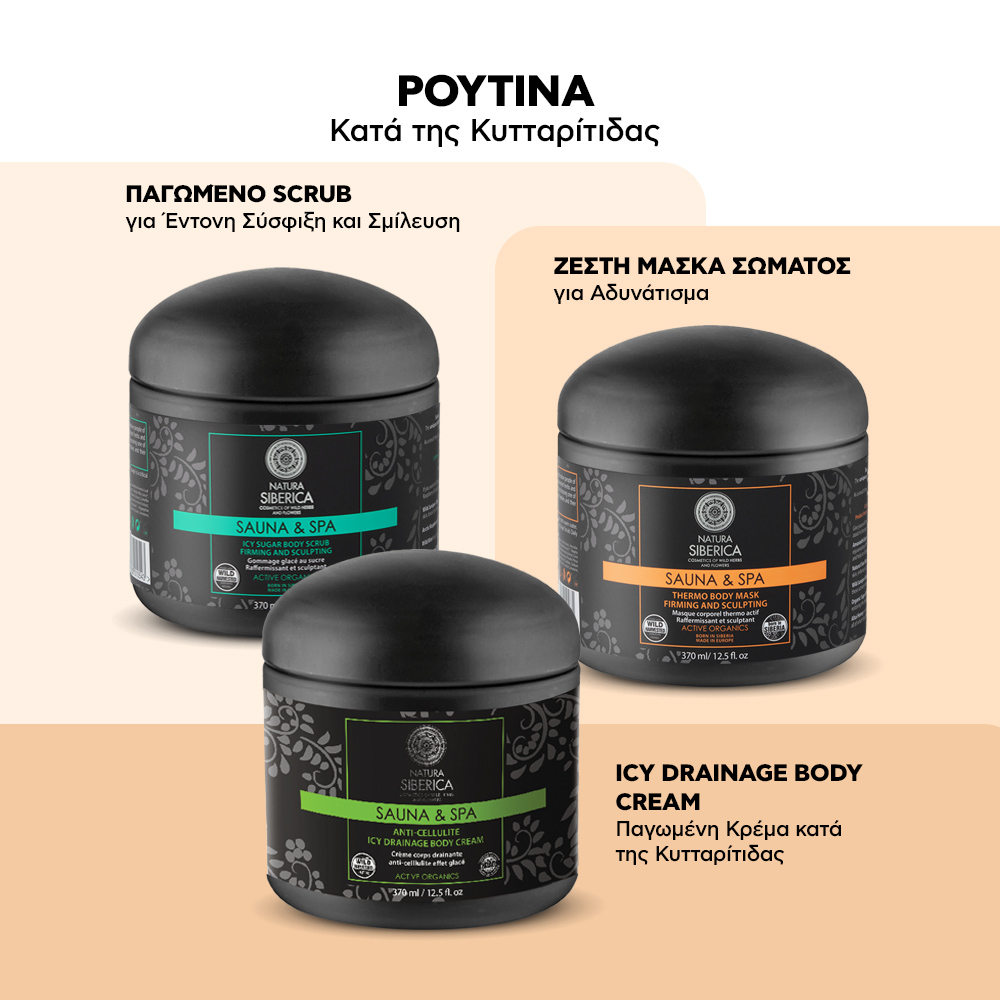 Για καλύτερα αποτελέσματα χρησιμοποιήστε πρώτα το Scrub Σώματος Sauna & Spa Icy Sugar για Έντονη Σύσφιξη & Σμίλευση, 370ml.