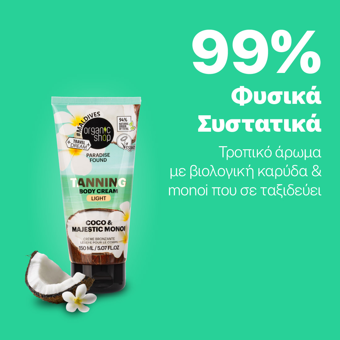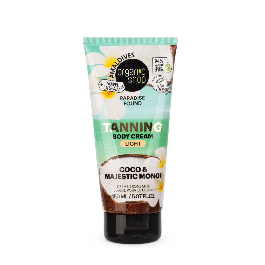 Aqua (Water), Isopropyl Palmitate, Glycerin, Cetearyl Alcohol, Dihydroxyacetone, Dimethicone, Glyceryl Stearate, Cetearyl Glucoside, Cocos Nucifera (Coconut) Oil*, Helianthus Annuus (Sunflower) Seed Oil*, Plumeria Alba (Frangipani) Flower Extract*, Gardenia Taitensis (Tiare) Flower Extract, Ethylhexylglycerin, Xanthan Gum, Acrylates/C10-30 Alkyl Acrylate Crosspolymer, Sodium Hydroxide, Benzyl Alcohol, Citric Acid, Parfum (Fragrance), Alpha-Isomethyl Ionone, Coumarin, Hexamethylindanopyran, Limonene, Tetramethyl Acetyloctahydronaphthalenes, Linalyl Acetate, Vanillin. (*) – Ingredients From Organic Farming