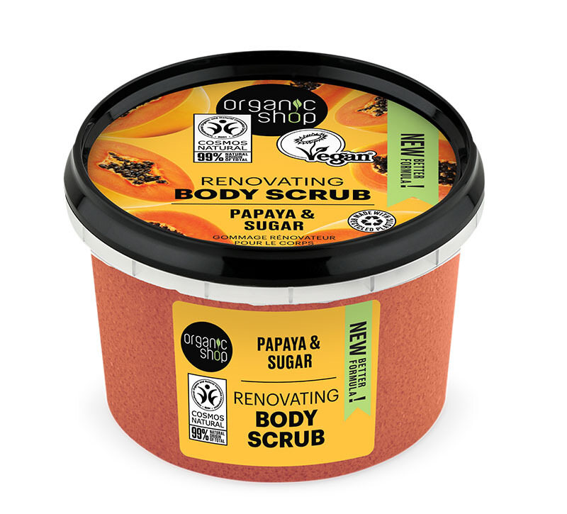 Organic Shop Renovating Body Scrub with Papaya & Sugar Απολεπιστικό Σώματος με Μάνγκο & Ζάχαρη για Καθαρισμό - Αναζοωγόνηση της Επιδερμίδας 250ml
