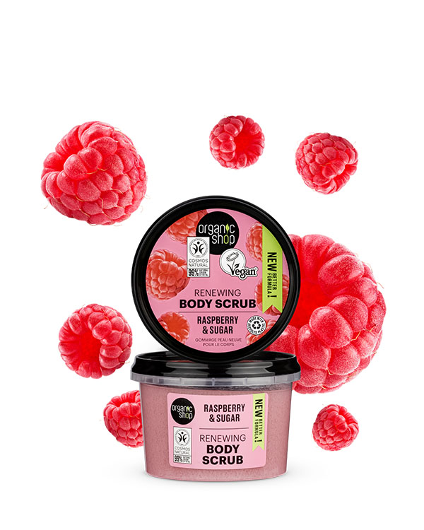 Organic Shop Renewing Body Scrub with Raspberry & Sugar Απολεπιστικό Σώματος με Σμέουρο & Ζάχαρη για Καθαρισμό - Ανανέωση της Επιδερμίδας 250ml