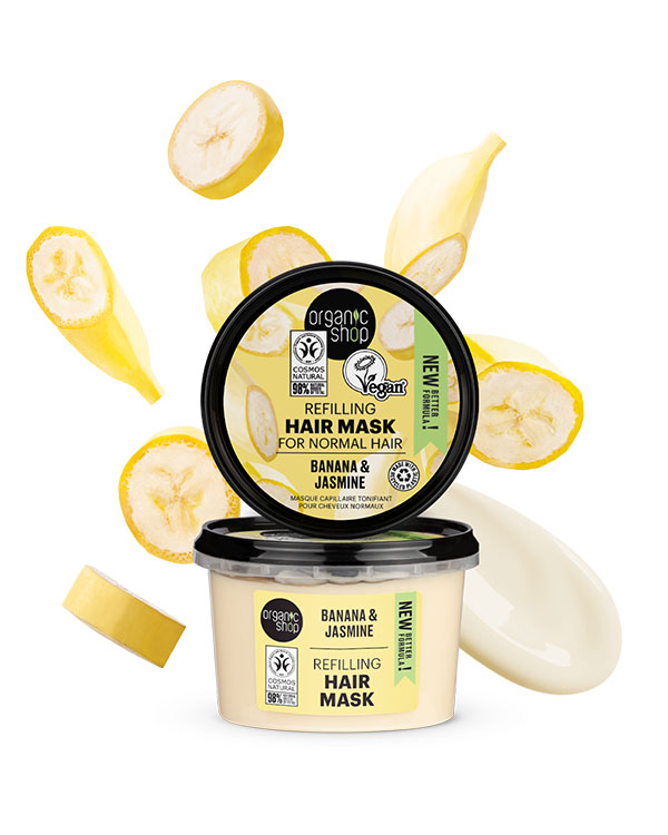 Αυτή η μάσκα μαλλιών συνδυάζει τη δύναμη του οργανικού εκχυλίσματος μπανάνας και του οργανικού εκχυλίσματος γιασεμιού, δύο φυσικών συστατικών που προσφέρουν μοναδική φροντίδα στα μαλλιά σας. Ενυδατώνει σε βάθος, προσφέροντας μαλακή υφή και εύκολη διαχείριση.